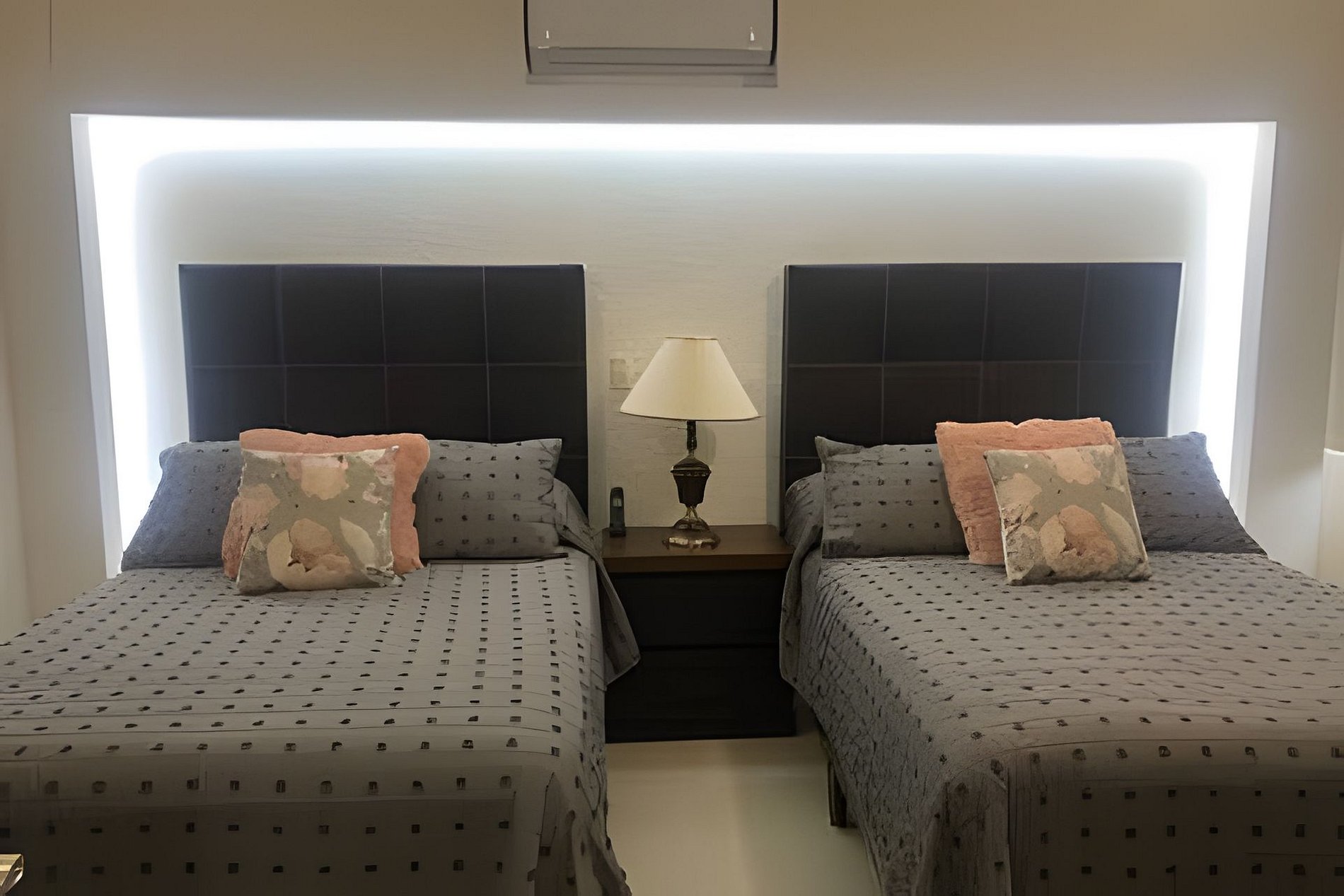 La naturaleza estará presente en todas tus vacaciones, jardines, palmeras, albercas y una hermosa y amplia playa para ti, disfruta del mar con tu palapa propia junto al mar, con sillas y camastros disponibles sin costos extras. El condominio cuenta con restaurante junto a las albercas de la playa abierto solo en temporada alta vacacional. No te querrás perder ningún atardecer. Se tendrá que dar un deposito en efectivo por garantía al llegar, el costo es de $4,500 Mxn en efectivo. Este depósito será devuelto completo en el check out si no hay desperfectos. . El condominio cobra $100.00 pesos diarios por persona de fee. Si hay cambio de blancos, hay costo extra en cada cambio. El condominio incluye limpieza diaria.